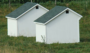 Each field has a run-in shed to subsidize protection provided by the groves of trees.